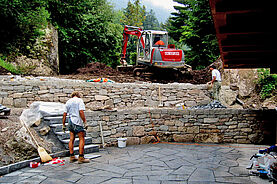 Auf einem weitläufigen Privatgelände wurden von Salamandra seit 2001 verschiedene Trockenmauern, Wege, Plätze und eine Steinbrücke erstellt. Neben der Funktionalität stand die Idee, jedes neue Objekt möglichst passend in die faszinierende Naturlandschaft der Rigi einzufügen, im Vordergrund Bei den Mauern wurde vorwiegend mit dem Stein der Rigi gearbeitet(Nagelfluh, Sandstein), hinzu kam der regionale Sandstein aus Steinbrüchen.